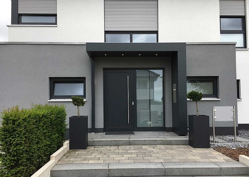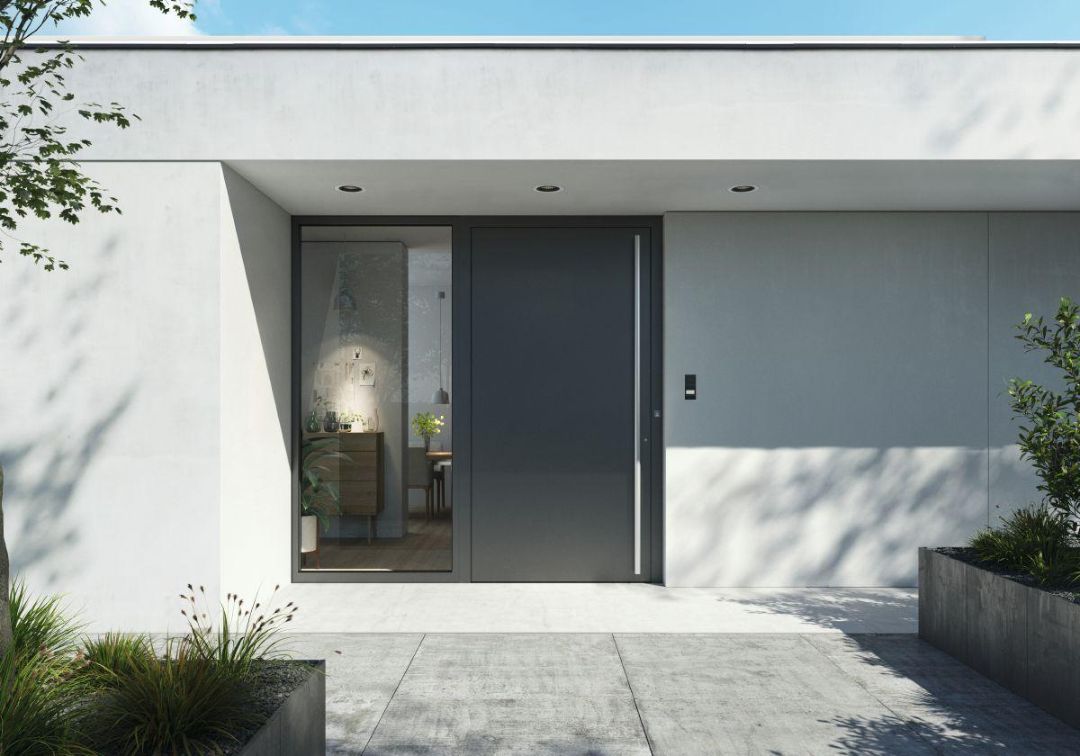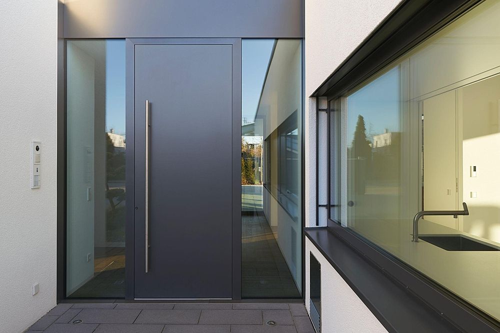 Входные алюминиевые двери служат не менее 50 лет. Легкость в уходе, возможность изготавливать крупногабаритные конструкции, высокая степень энергоэффективности и разнообразие вариантов дизайна делает двери из алюминия оптимальным выбором для современных загородных домов.