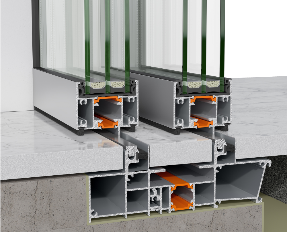 Нижняя часть конструкции зачастую становится самым холодным местом портала. Теплый подставочный профиль Triotherm+ из EPS высокой плотности (более 200 кг/метр) специально разработан для обеспечения максимальной тепло- и гидроизоляции. Он надежно предотвращает образование мостиков холода и отличается исключительной прочностью.