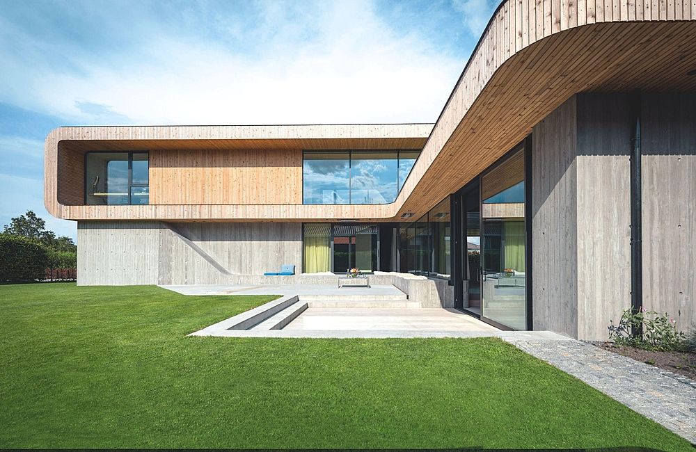 В современной загородной архитектуре все чаще встречается угловое остекление. Обычно это реализуется с использованием витражного остекления. Подъемно-сдвижные системы позволяют сделать угол полностью раздвижным.